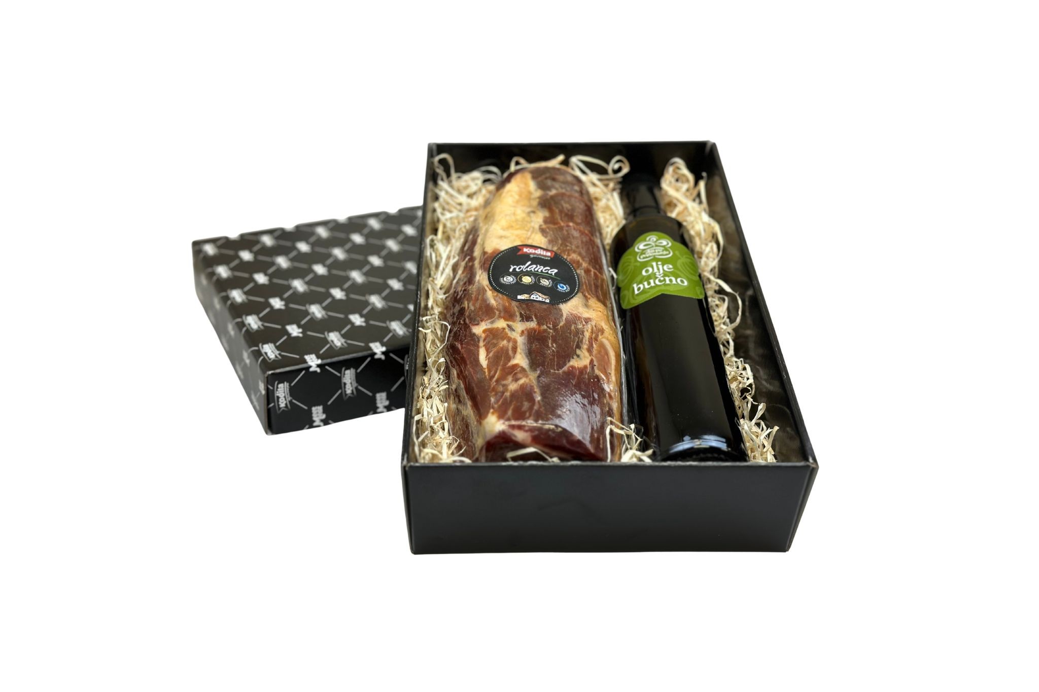 PREKMURSKA ROLANCA CELA cca 2,5kg, BUČNO OLJE 0,5l, DARILNA ŠKATLA Z POLNILOM